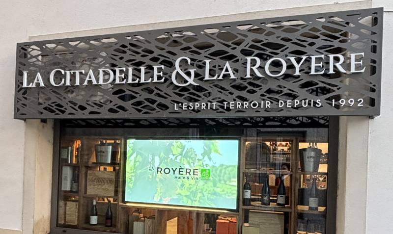 Pour ce projet, nos équipes sont intervenues auprès de La Citadelle & La Royère, caviste et magasin de spiritueux à L’Isle-sur-la-Sorgue, afin de réaliser une signalétique extérieure sobre, lisible et en phase avec l’identité du commerce.