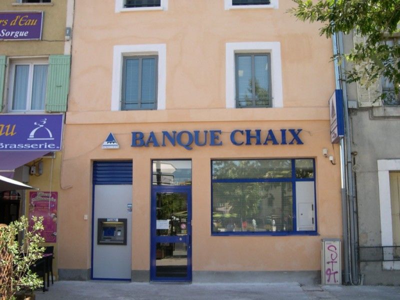 Fabrication et pose des enseignes Banque Chaix.