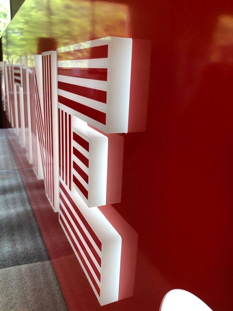 Sur la face, nous découpons le lettrage et nous incrustons les lettres en plexiglas blockled (ou matel glass).