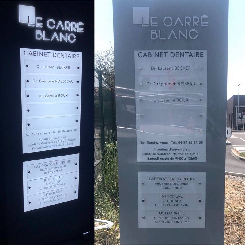 Dans le cas d’un totem lumineux les faces sont ajourées et un plexiglas diffusant est contre collé.