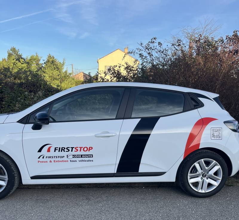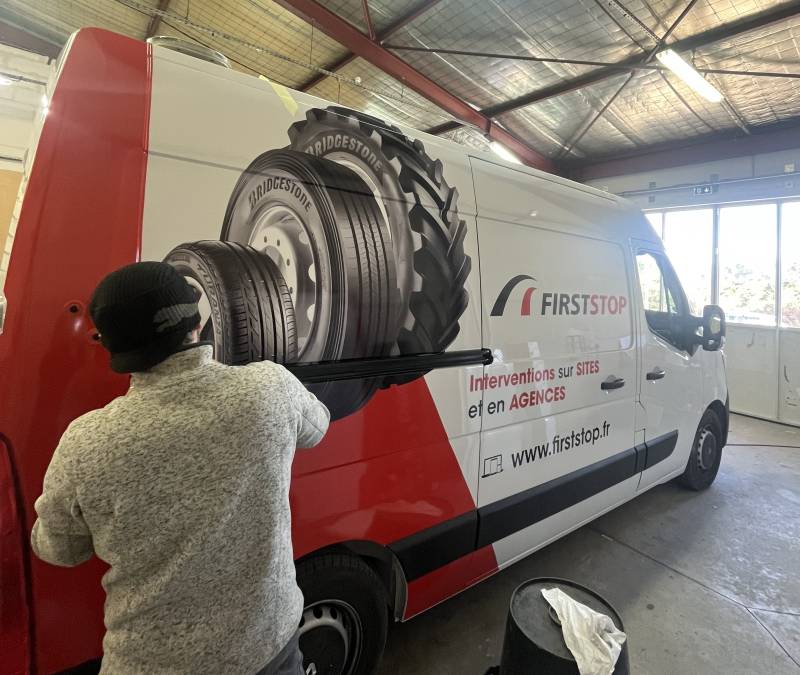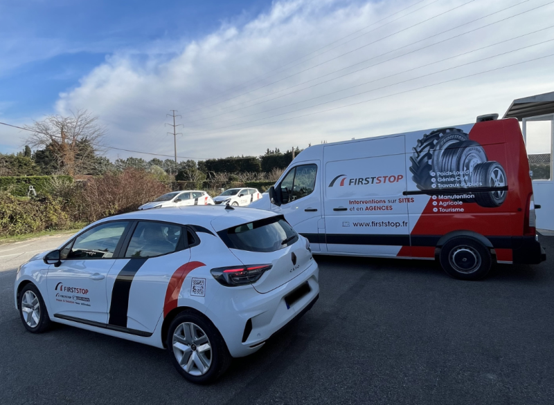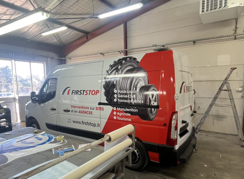 Nous avons réalisé pour First Stop le marquage publicitaire de la flotte de véhicules.