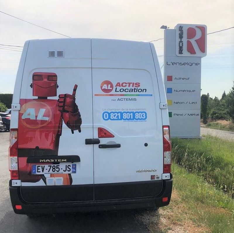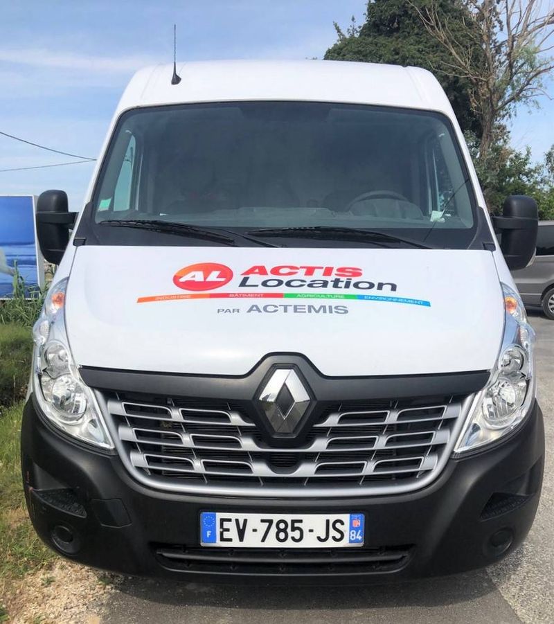 Notre atelier adhésif a concrétisé le projet de décoration de plusieurs véhicules utilitaires pour notre client ACTIS LOCATION. Le décor a été réalisé en utilisant du film adhésif teinté dans la masse pour les couleurs et en impression numérique pour les logos et les images.