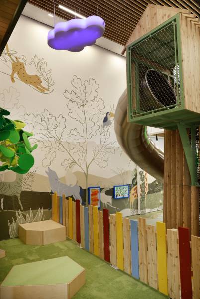 Le Mail a été réétudié et réaménagé, nous avons réalisé des murs de communication graphique en fonction de chaque univers souhaité par le client, les décors ont été fait en impression numérique, des éléments graphiques en lettres découpées ont été positionné sur des zones Univers.