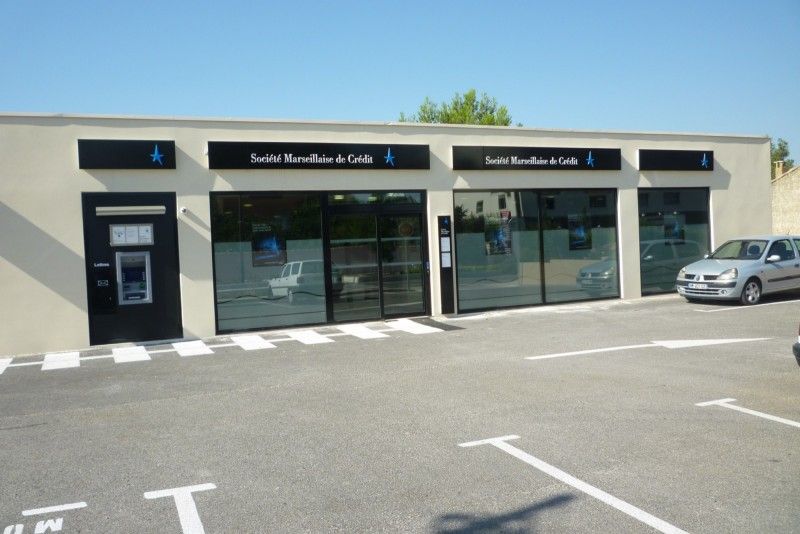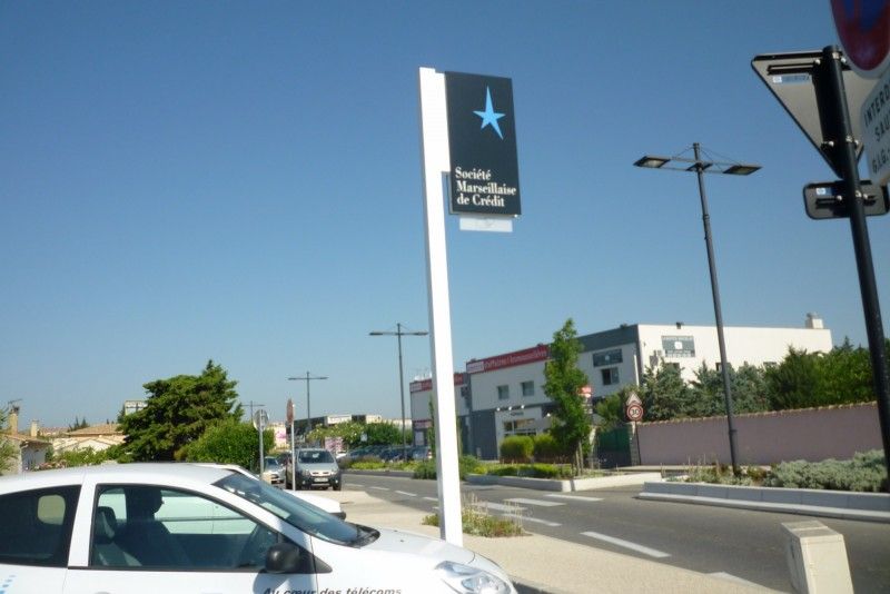 Nous avons pris en charge la fabrication et l'installation des nouvelles enseignes pour la Société Marseillaise de Crédit. Ces enseignes ont été conçues à partir de caissons lumineux en aluminium, avec un lettrage en surépaisseur en plexiglas pour une visibilité optimale. En plus des enseignes principales, nous avons créé deux drapeaux "main carte" lumineux, installés en fixation murale et sur mât.