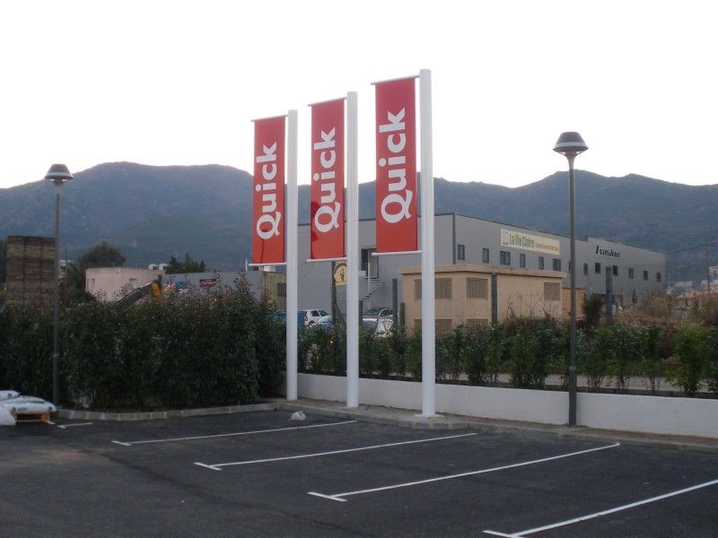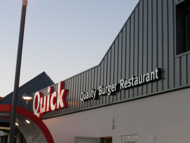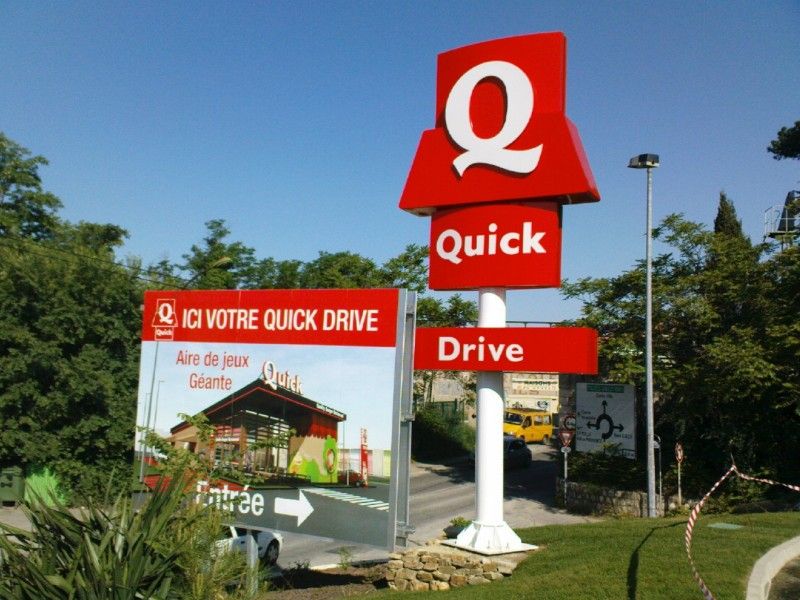 Les Enseignes Richier réalisent la fabrication de l'ensemble de la signalétique des Restaurants Quick sur grand Sud Est de la France.