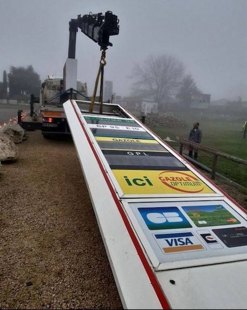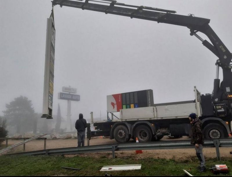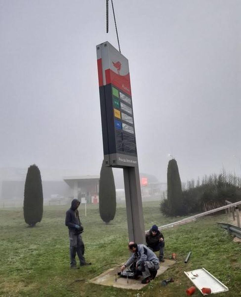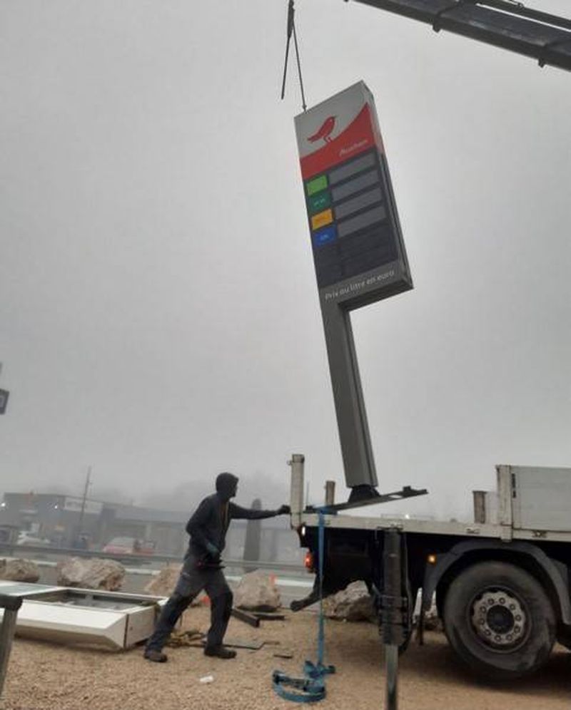L'installation de ce totem a été réalisée par nos équipes de pose expérimentées, bénéficiant de l'assistance précieuse de la société MEDIACO pour le levage. Cette collaboration a permis une mise en place précise et sécurisée, assurant ainsi la visibilité maximale.