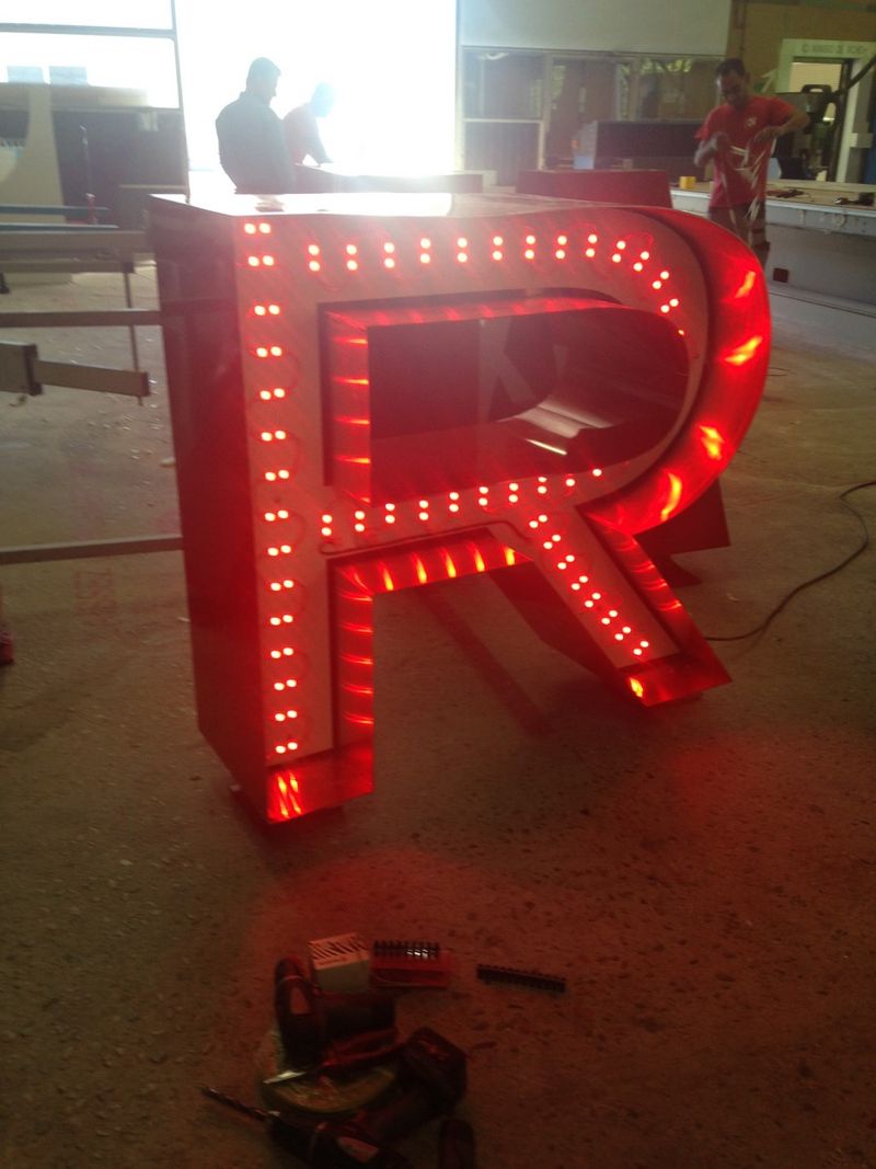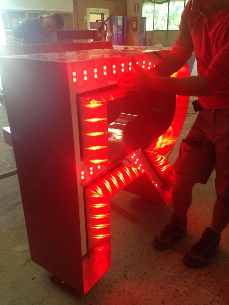 Ensuite ces lettres boitier passent à l'atelier éclairage pour la mise en place de diodes sur un fond en PVC.