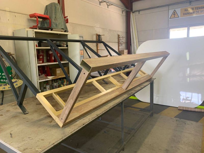 L'habillage de l'ensemble de la casquette avec un bandeau en aluminium recouvert de l'adhésif effet bois.