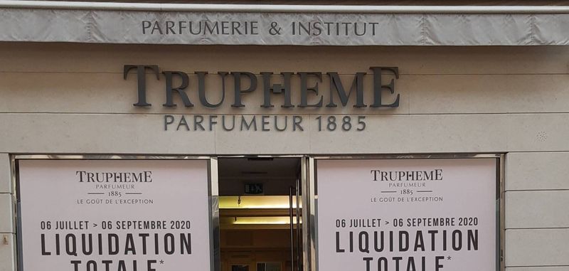 Le lettrage "PARFUMEUR 1885" est en PVC découpé à plat et laqué suivant la charte de notre client.