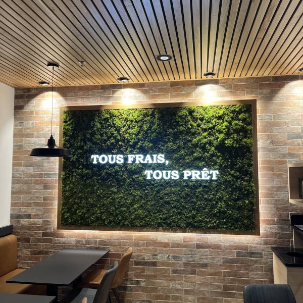 Nous avons également conçu des lettres en PVC expansé pour les mentions "sandwich", "salade", "pâtisserie" et "viennoiserie", afin d’offrir une signalétique moderne qui reflète l'esprit de ce snack.