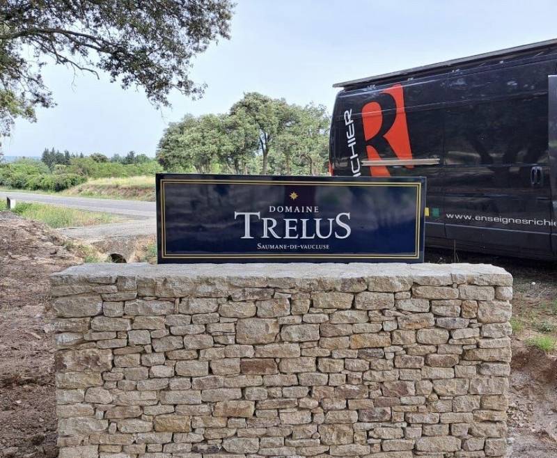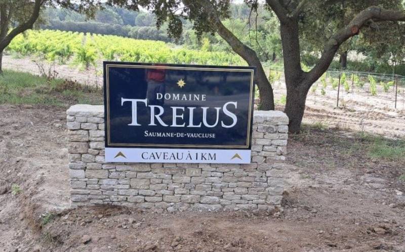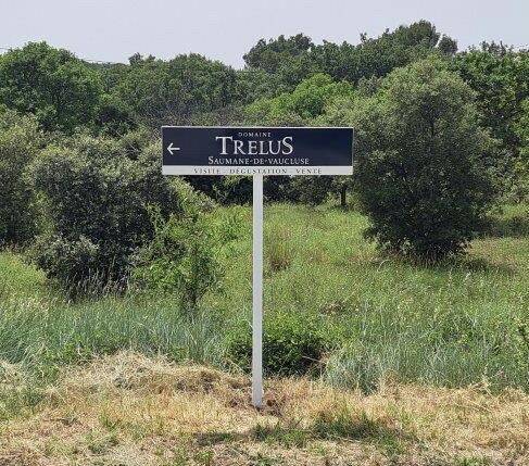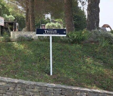 Pour notre client, Le Domaine TréluS à Saumane de Vaucluse nous avons fabriqué une série de panneaux de signalétique du domaine viticole.