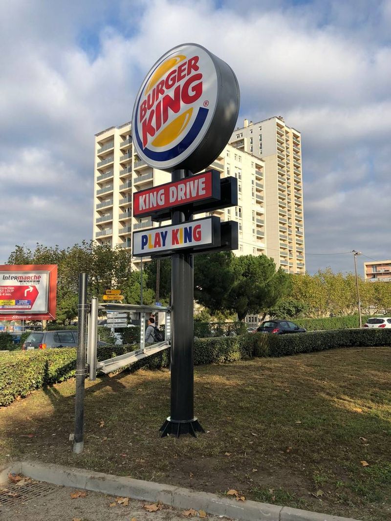 Nous avons réalisé pour l'enseigne BURGER KING la signalétique du restaurant à Marseille Saint Loup.
