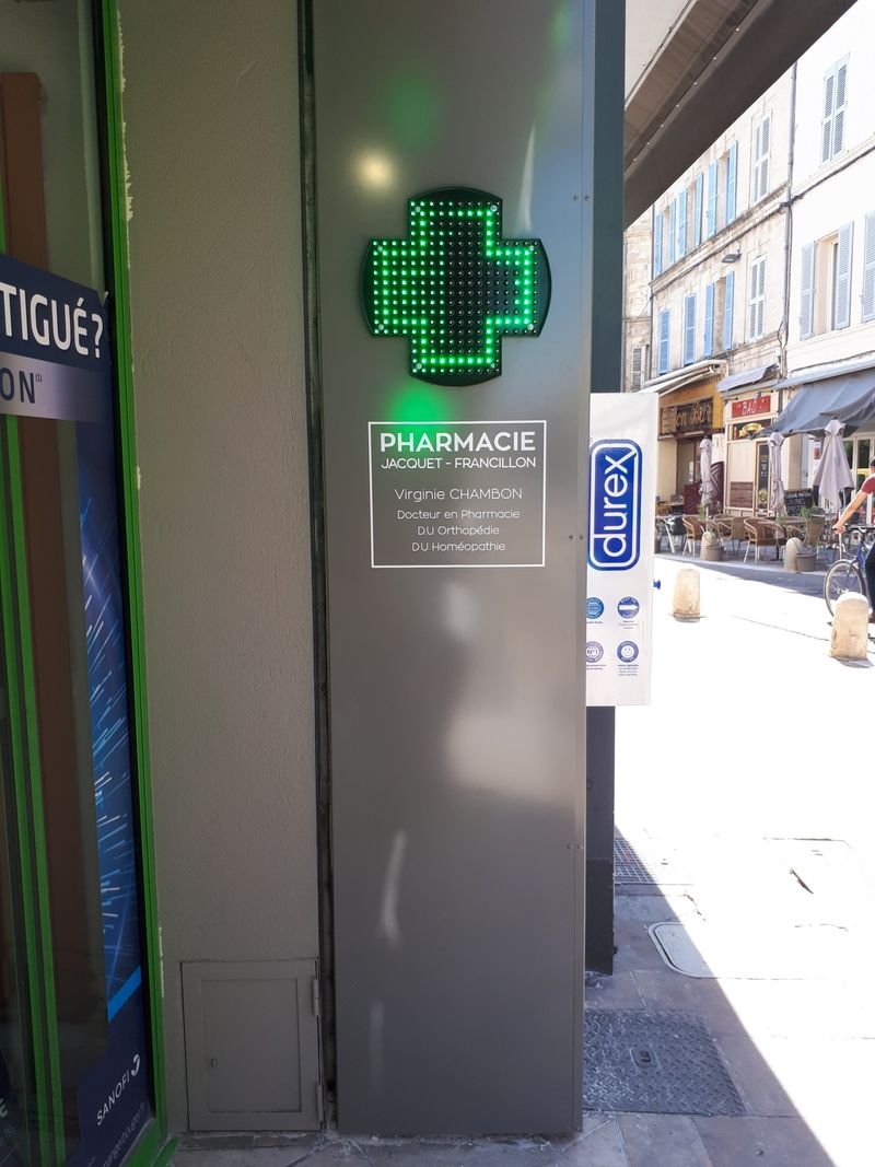 Les Enseignes RICHIER, ont réalisés l'habillage de la façade de la pharmacie CHAMBON à Avignon dans le Vaucluse.
