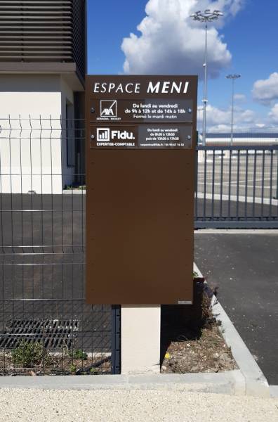 Nous avons aussi installé deux plaques en plexiglas transparent aux entrées de l'Espace MENI, affichant de manière claire les horaires, les coordonnées et le logo. Cette démarche renforce la visibilité et la professionnalisme de l'entreprise, facilitant ainsi l'accès aux informations importantes pour les visiteurs et les passants.