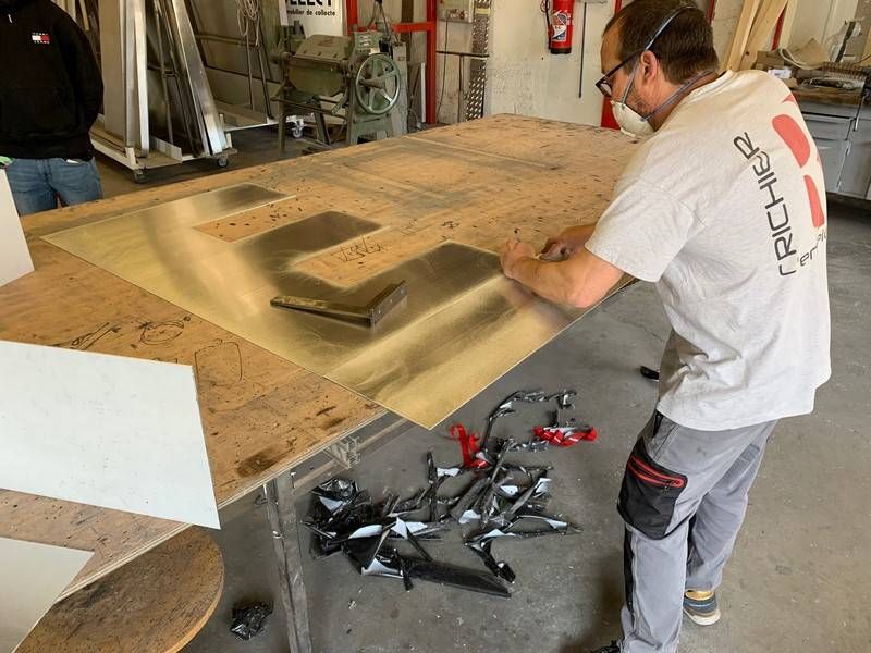 En aluminium 2 ou 3 mm, nos ferronniers façonnent les faces, les fonds et les reliefs de ce type de lettres.