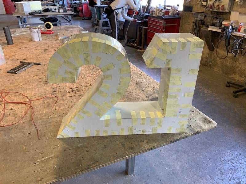 C'est lettres géantes sont en boitier aluminium sur un châssis.