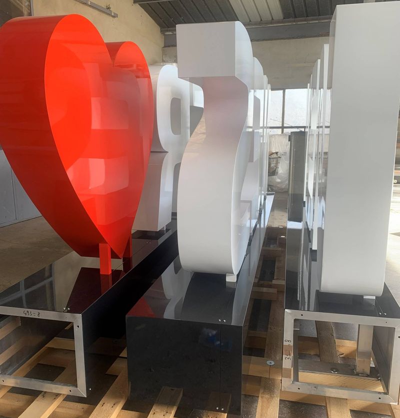 lettres géantes ou XXL sont fabriquées en aluminium 3 mm et 2 mm par nos ferronniers.