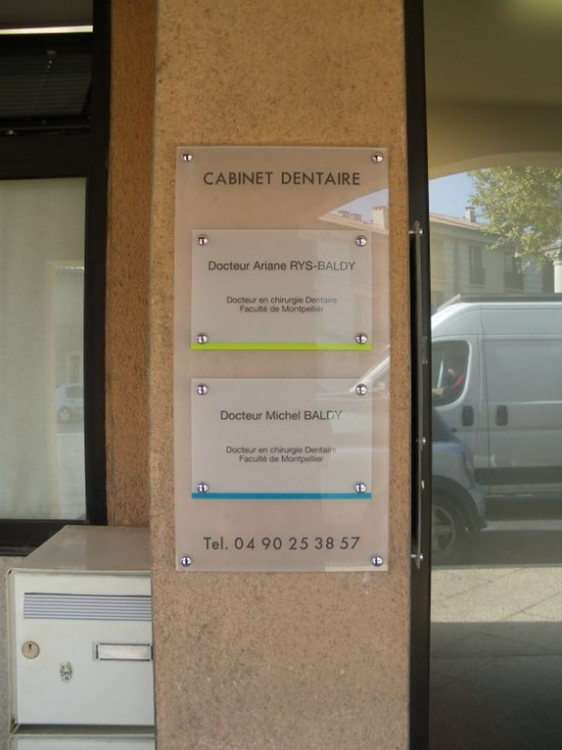 Nous réalisons des plaques professionnelles, sur différents supports, le plexiglas, l'aluminium, le laiton, le cuivre, l'inox.
