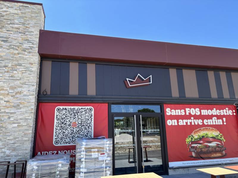 Pour le Burger King de Fos-sur-Mer, nous avons fabriqué une enseigne lumineuse en lettres boitier avec les faces en plexiglas blanc diffusant, le fond en PVC et les chants en aluminium. Nous avons également réalisé un logo lumineux avec la face en plexiglas thermoforme, les chants en alu laqué avec une finition satiné et le fond en aluminium. L'enseigne et le logo sont éclairés d'un éclairage intérieur par des diodes.
