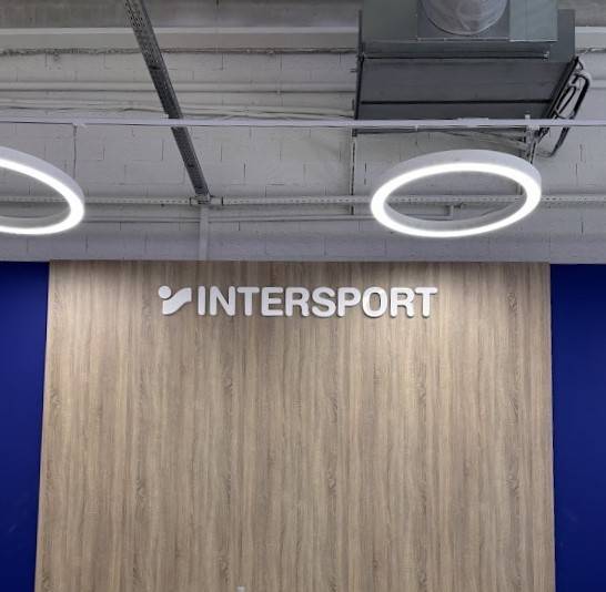 Nous avons, également, réaliser des textes en PVC, "Intersport.fr" et "atelier", fixés par collage a l'arrière des lettres, destinés à l’intérieur comme à l’extérieur du point de vente.