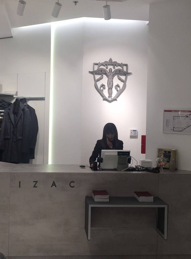 Le concept des boutiques IZAC se compose d'une enseigne lumineuse en plexiglas diffusant "bloc led" ainsi que le blason de la marque, dans le même type de fabrication.