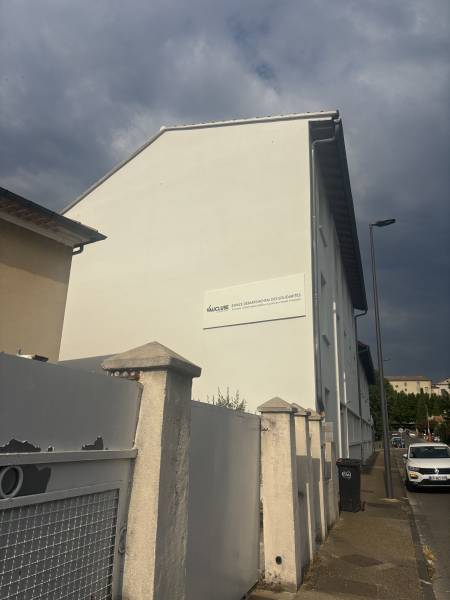À Apt, nous avons conçu une enseigne en tôle tablette prélaquée blanche, ornée d’un lettrage en adhésif vert et ocre. Le projet incluait également plusieurs plaques en Alumatelbond décorées avec un film adhésif standard teinté bleu, ainsi que pour un mât directionnel avec lettrage adhésif vert, ocre et bleu. Et nous avons réalisé des drapeaux double face en forme de flèche, en plaque Alumatelbond et décorés en adhésif bleu.