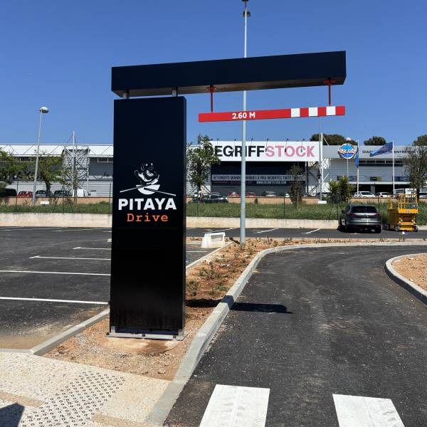 Notre client nous a contactés pour concevoir la signalétique de son tout premier restaurant avec drive.
